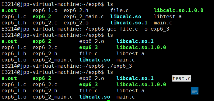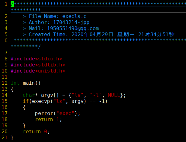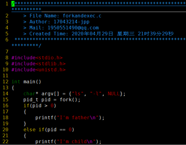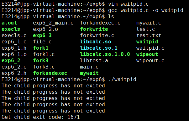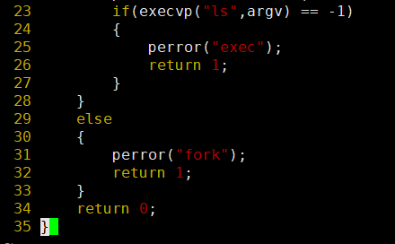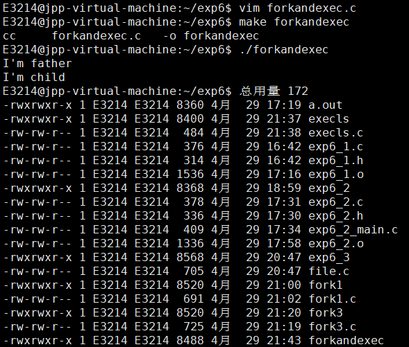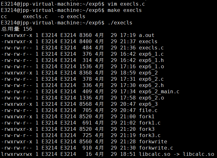 7.分别在主函数中使用 execvp 启动 ls 命令以及使用 fork 函数产生子进程调用 execvp 启动 ls 。