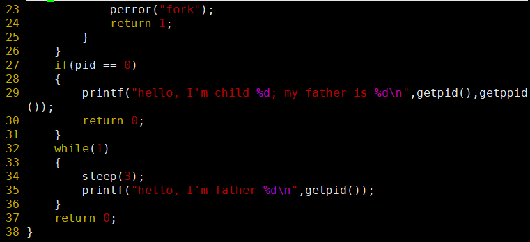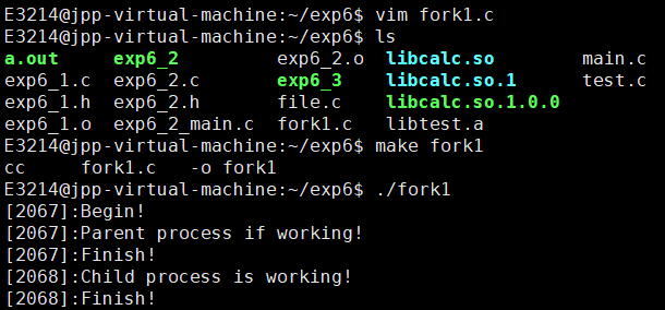 4.使用 fork 创建一个子进程,进程创建成功后父子进程分别输出不同的内容。