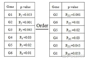 BH 法需要将总计m次检验的结果按由小到大进行排序,k为其中一次检验结果的P值所对应的排名。