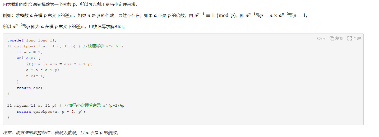 4.1 费马小定理求逆元
