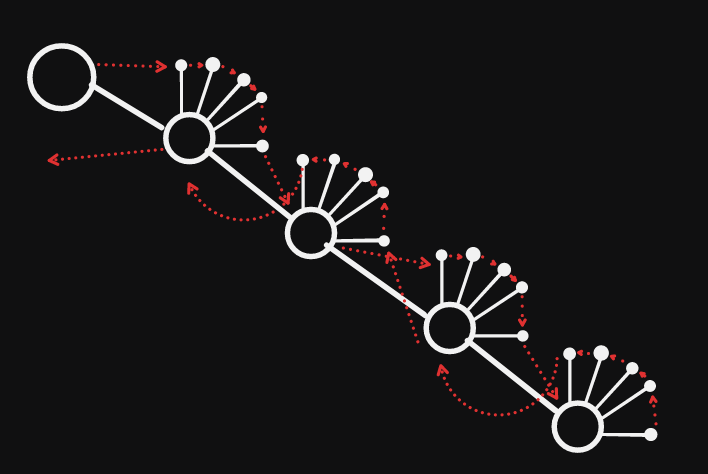 忽视叶子,对于每一个有一棵子树的根链上的节点都这样跑,如果没有那它可以直接跳到下一个节点,帮助下一个节点跑一棵子树。