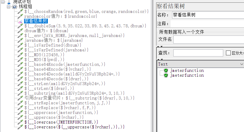 如:${__strReplace(jmeterfunction,j,J,)} ${__strReplace(${vchar},f,F,)} 直接对字符串或引用变量值,进行替换,都可以