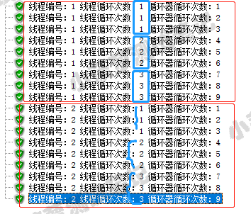 - 每次线程运行 1 次(循环 1 次)时,循环器都会循环运行 3 次,所以 __counter 最大输出会到 9