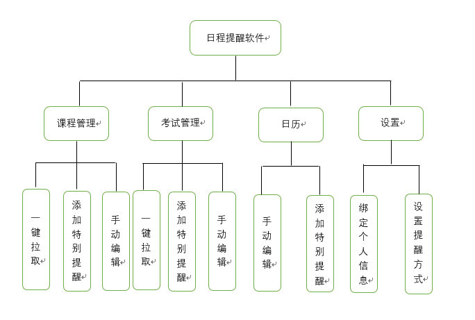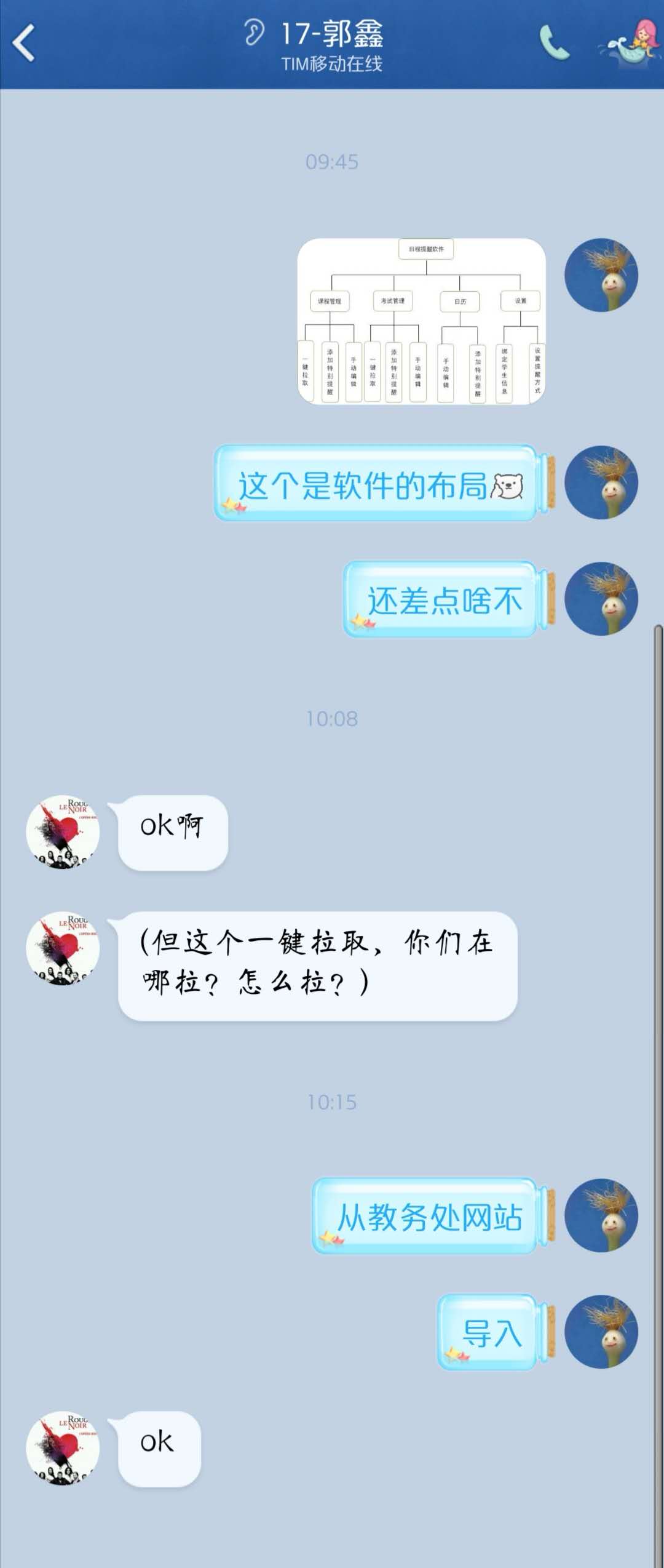 A: 我们的需求主要就是这三点,第一,可以一键拉取自己课表,考试时间,并添加进日程表,也可以说是获取学生信息。第二,可以经行日程的规划,修改,提醒,学生能在这个日程表的基础上,进行自己的时间规划。第三,可以给某个日程标注特别提醒,时间快到了就有铃声之类的提醒。