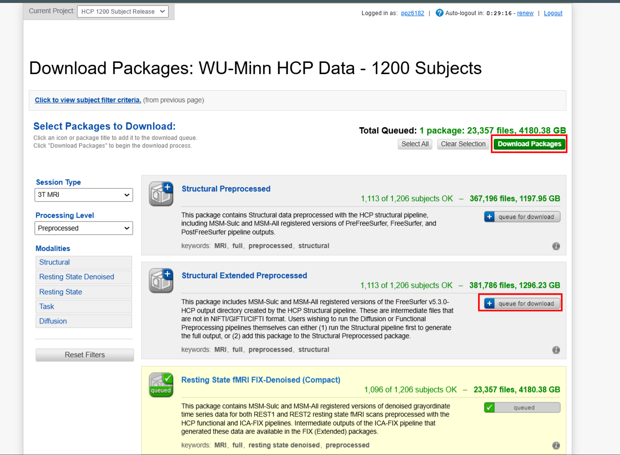 ③选择需要的数据点击queue for download,然后点击Download Packages