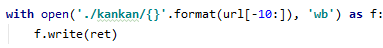 with open('./kankan/{}'.format(url[-10:]), 'wb') as f: