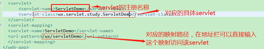 4.在web.xml文件需要配置 ServletDemo的访问路径,如下图: