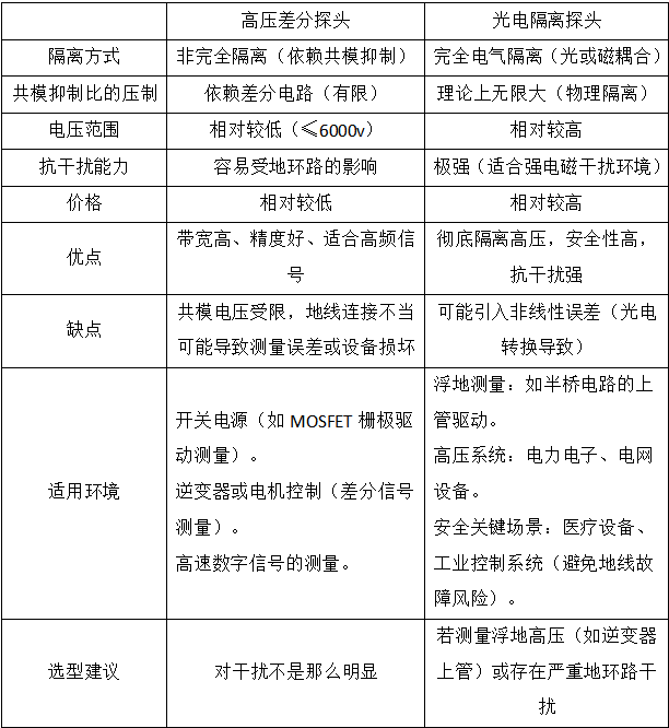 高压差分探头和光电隔离探头如何选型