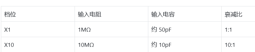 与示波器内部 1MΩ 输入电阻形成 10:1 分压比