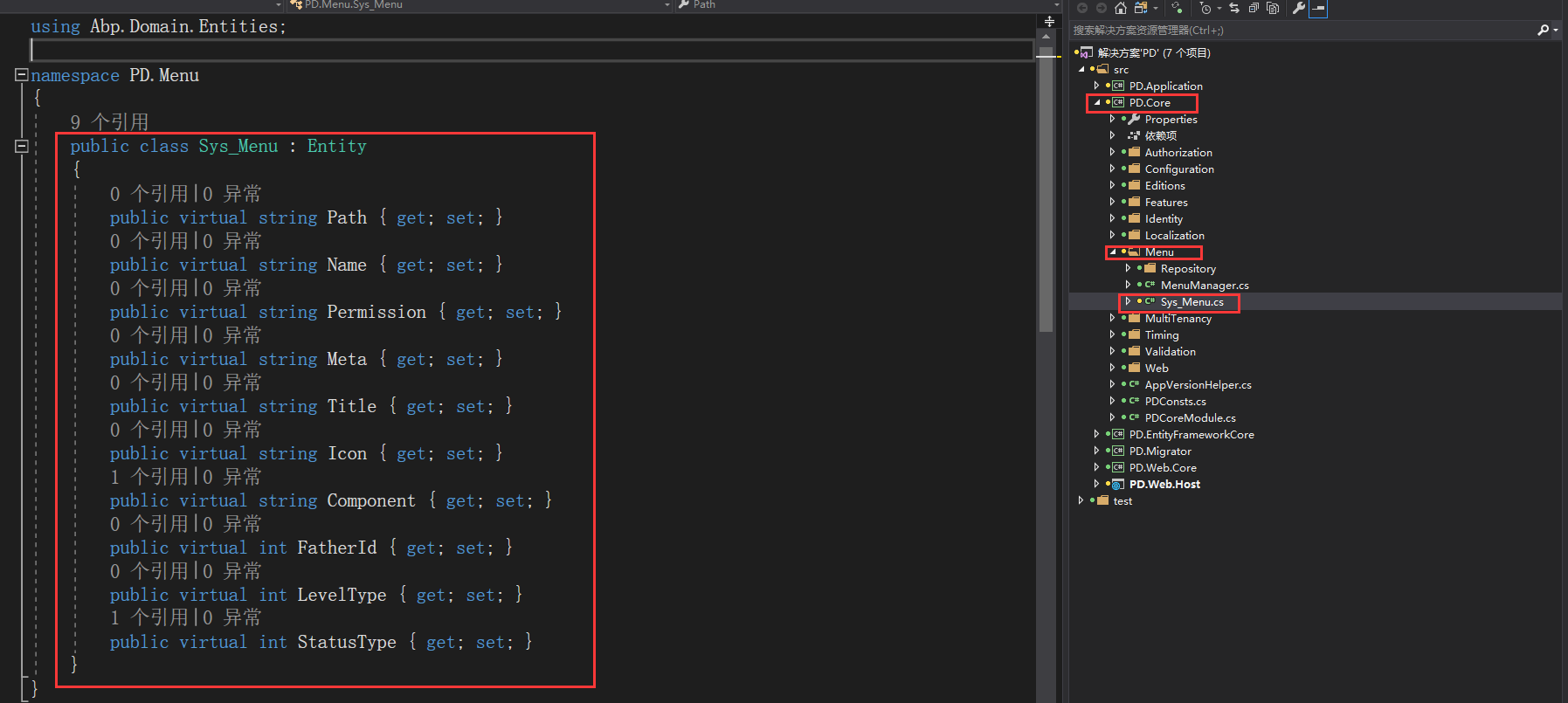 ABP框架—后台:创建实体类Entity(7)