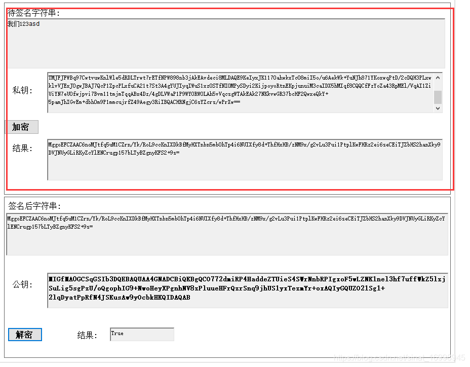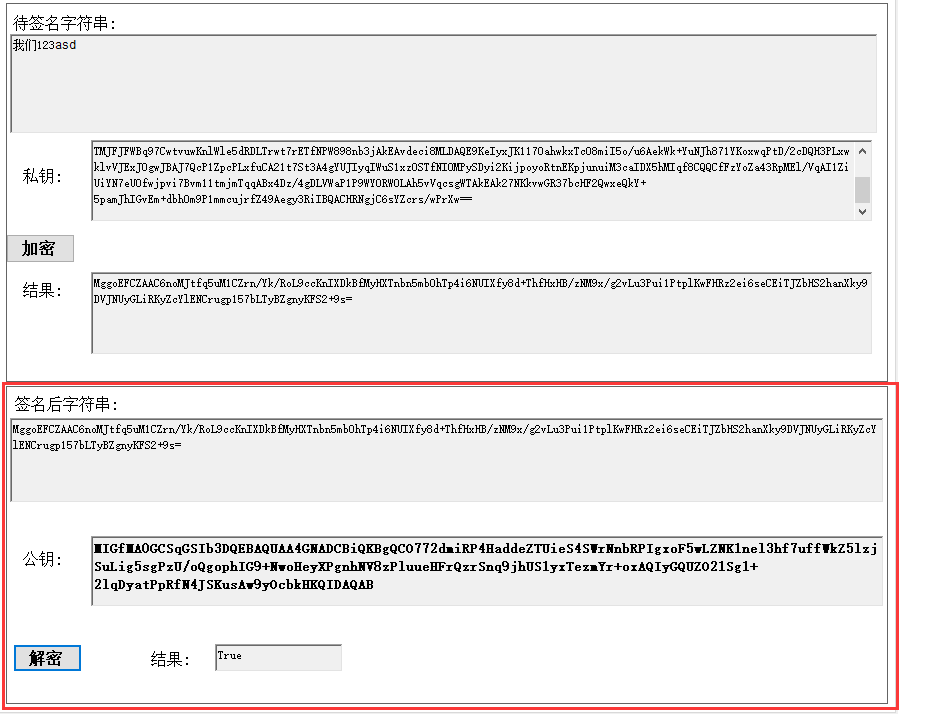 说明:1.使用私钥签名, 2.签名后每次结果是不变的