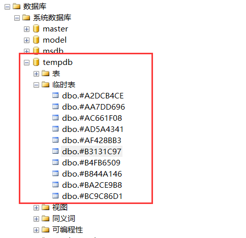 当不使用DROP TABLE删除临时表时,可在tempdb中查看