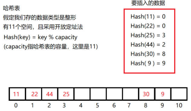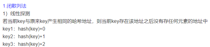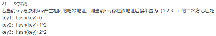 当关键字key的哈希地址p=H(key)出现冲突时,以p为基础,产生另一个哈希地址p1,如果p1仍然冲突,再以p为基础,产生另一个哈希地址p2,…,直到找出一个不冲突的哈希地址pi ,将相应元素存入其中。