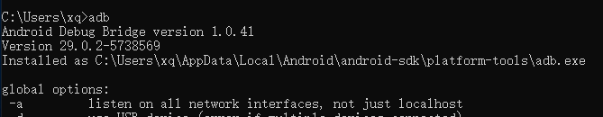 1.下载安装adb后,打开cmd,输入命令 adb 出现adb的相关信息,表示安装成功啦(接下来就可以愉快的使用了):