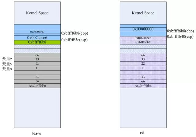 也就是说leave指令等价于下面两条指令,你将leave替换成它们编译运行,结果还是对的: