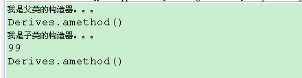 在父类的构造器中调用了amethod()方法,实际上是调用了子类重写父类的amethod()方法,输出"Derives.amethod()"