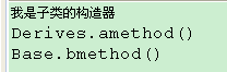 子类的实例化,首先初始化父类Derived的构造方法,输出“我是父类的构造器。。。”