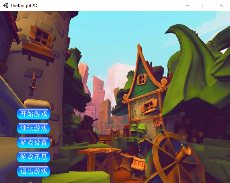 该Panel设有五个按钮:开始游戏、继续游戏、游戏设置、游戏讯息、退出游戏。按下开始游戏后,跳到游戏地图的Scene中,即可进行游戏;按下设置按钮后,将打开SettingPanel,在SettingPanel中进行相关设置操作;按下游戏讯息按钮后,打开MessagePanel显示游戏制作人员等相关信息;按下退出游戏按钮后,退出游戏。