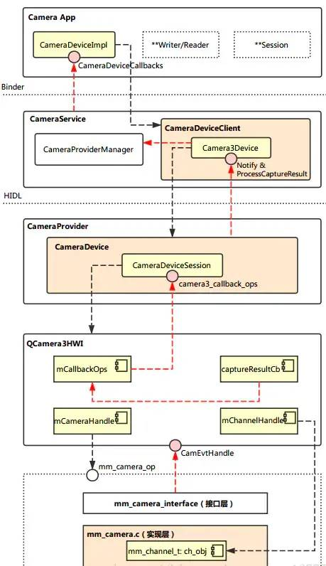 分别是从 CameraService 和 CameraDevice 到应用框架的回调。Natice framework:
