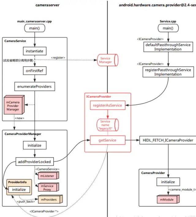 cameraserver 与 provider 这两个进程启动、初始化的调用逻辑,如下图: