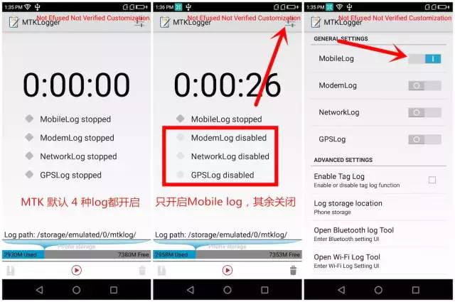 MTK log 默认开启了Modem log,这个对抓取通话相关的log是有利的,但是对于有高要求的功耗问题却有很大的坏处,开启modem Log 会导致手机功耗偏高,所以,功耗log要求:一定要关闭 modem log。