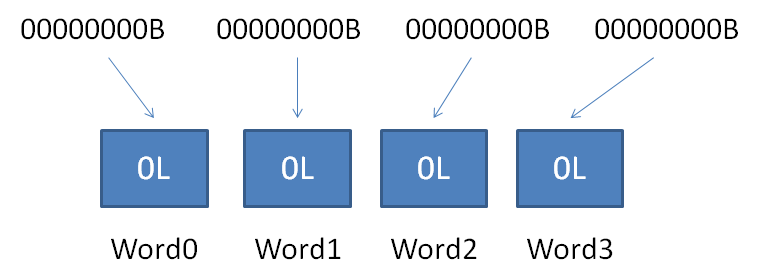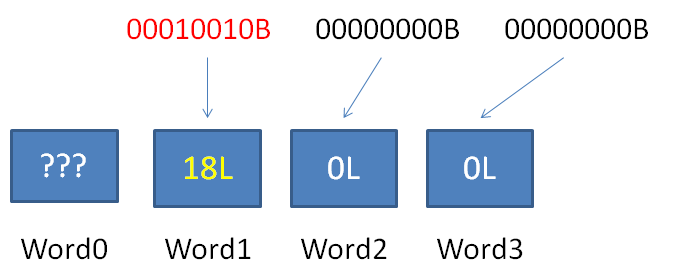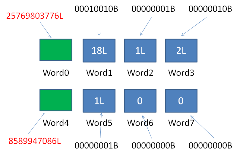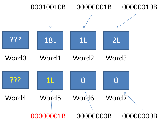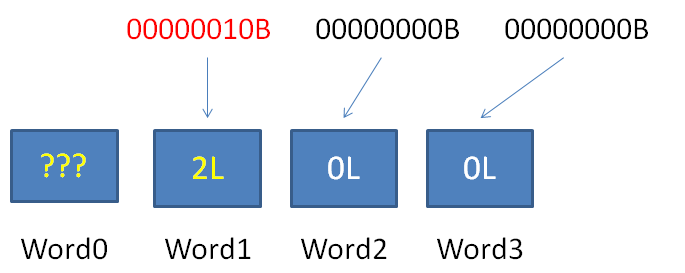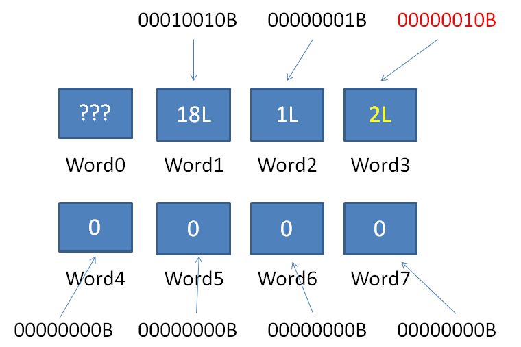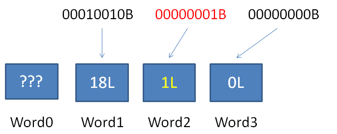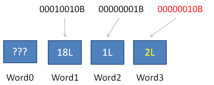 1.解析Word0,得知当前RLW横跨的空Word数量为0,后面有连续3个普通Word。