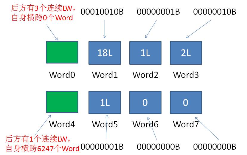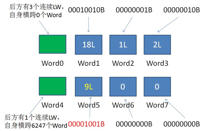 4.解析Word4,得知当前RLW横跨的空Word数量为6247,后面有连续1个普通Word。