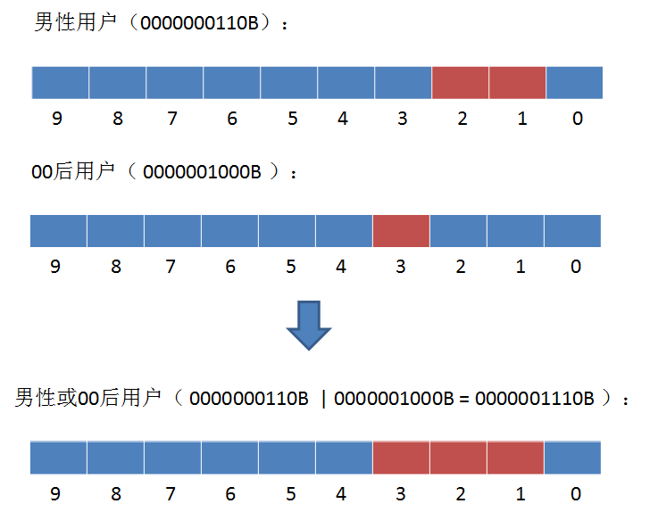 2. 让每一个标签存储包含此标签的所有用户ID,每一个标签都是一个独立的Bitmap。