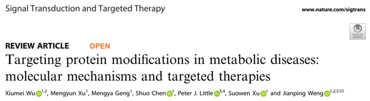Wu X, et al. 2023.Targeting protein modifications in metabolic diseases: molecular mechanisms and targeted therapies. Signal Transduct Target Ther.