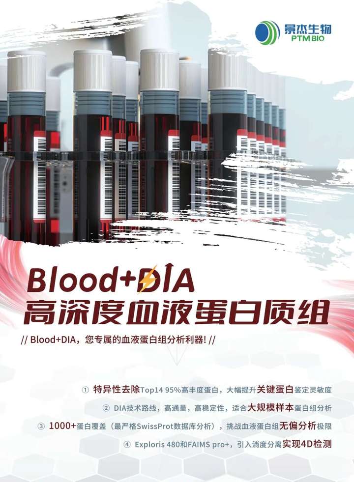 景杰生物推出基于高深度血液蛋白质组学+完整N糖肽+完整O-GalNAc的血液多组学生物标志物研究解决方案,特别适合于大规模队列样本的分析,为血液标志物筛选提供新的强大工具。详情可扫描文末的二维码或在微信后台留言或致电400-100-1145。