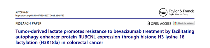 Autophagy | 乳酸化修饰促进结直肠癌对贝伐珠单抗治疗的耐药机制