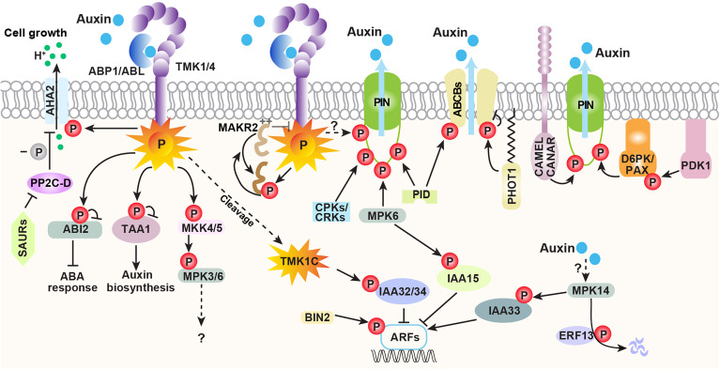 4. Henrichs S, et al. 2012. Regulation of ABCB1/PGP1-catalysed auxin transport by linker phosphorylation. EMBO J.4. Kim SH, et al. 2022. Phosphorylation of the auxin signaling transcriptional repressor IAA15 by MPKs is required for the suppression of root development under drought stress in Arabidopsis. Nucleic Acids Res.