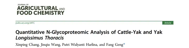 2. Chang X, et al. 2023. Quantitative N-Glycoproteomic Analysis of Cattle-Yak and Yak Longissimus Thoracis. J Agric Food Chem.