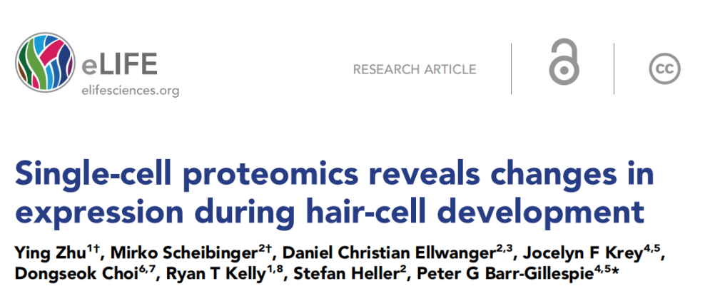 今天分享这篇题为“Single-cell proteomics reveals changes in expression during hair-cell development”的研究成果。研究首次报道了采用基于质谱的单细胞蛋白质组学技术(MS-Based Single Cell Proteomics),探索毛细胞分化过程中蛋白质的动态变化。利用蛋白表达水平重建细胞发育轨迹,揭示了毛细胞分化过程中一系列表达显著增加或减少的关键蛋白。