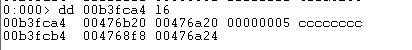 u poi(poi(00b3fcc8)+0) 可以获取虚函数表中第一个函数起始地址。
