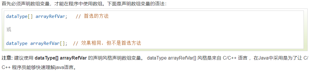 1.本周学习了Java数组,其中的声明数组变量方法: