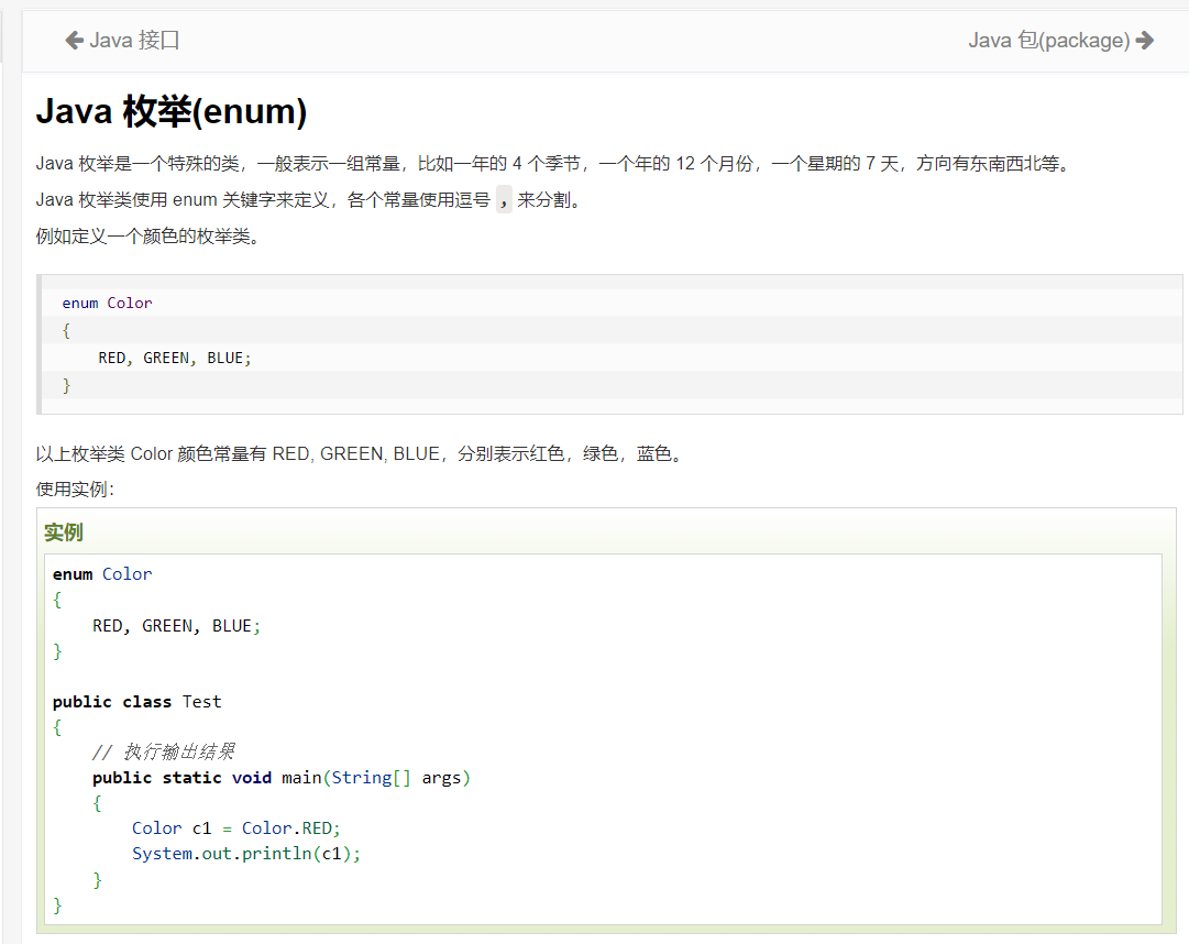 1.本周学习了Java的枚举的知识包括内部类中使用枚举,迭代枚举元素,在 switch 中使用枚举类