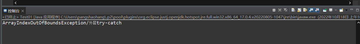 当有多层嵌套的finally时,异常在不同的层次抛出 ,在不同的位置抛出,可能会导致不同的finally语句块执行顺序, 先执行内层异常和finally ,在执行外层异常finally ,但是有抛出异常只显示最外层的.