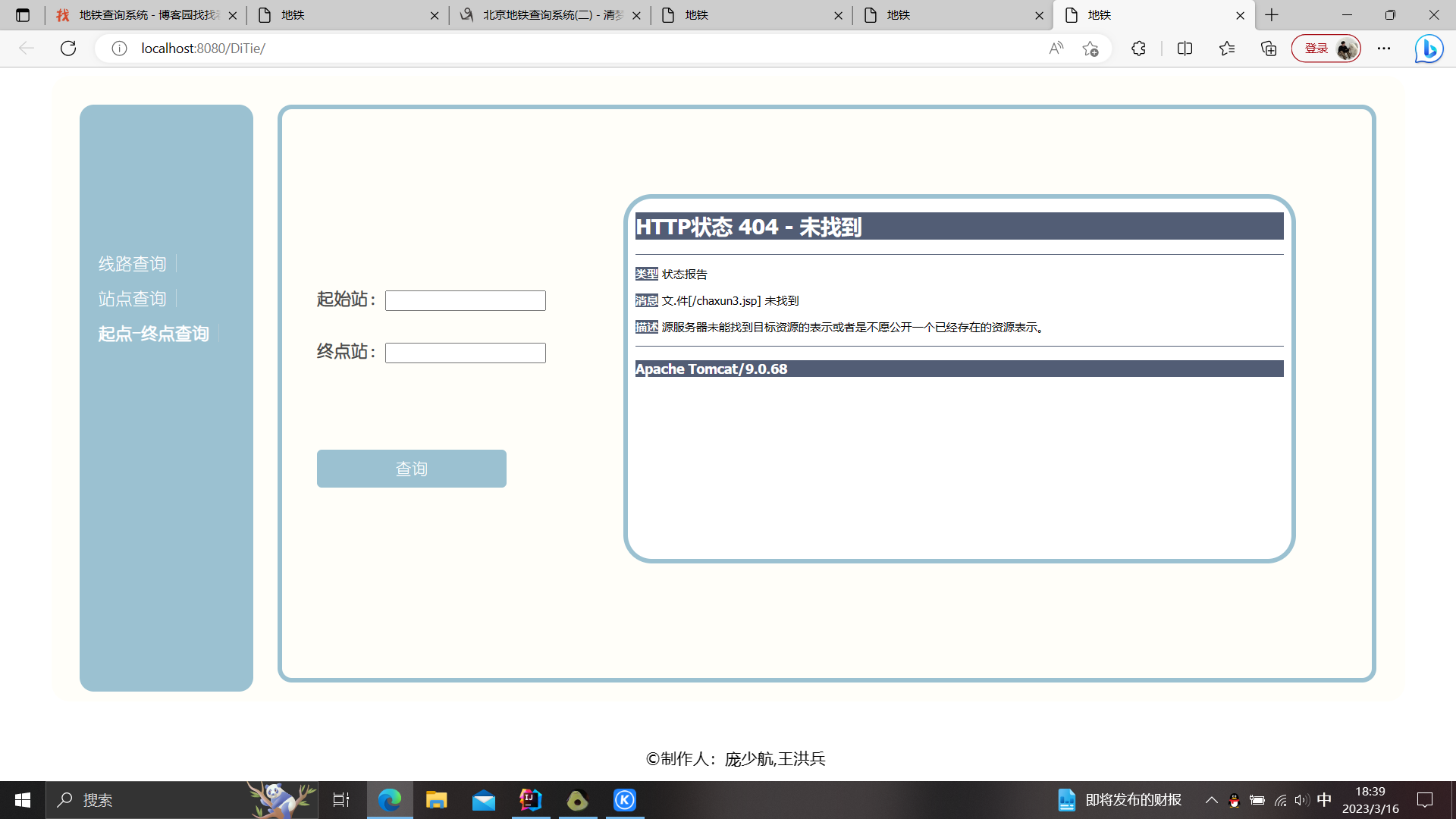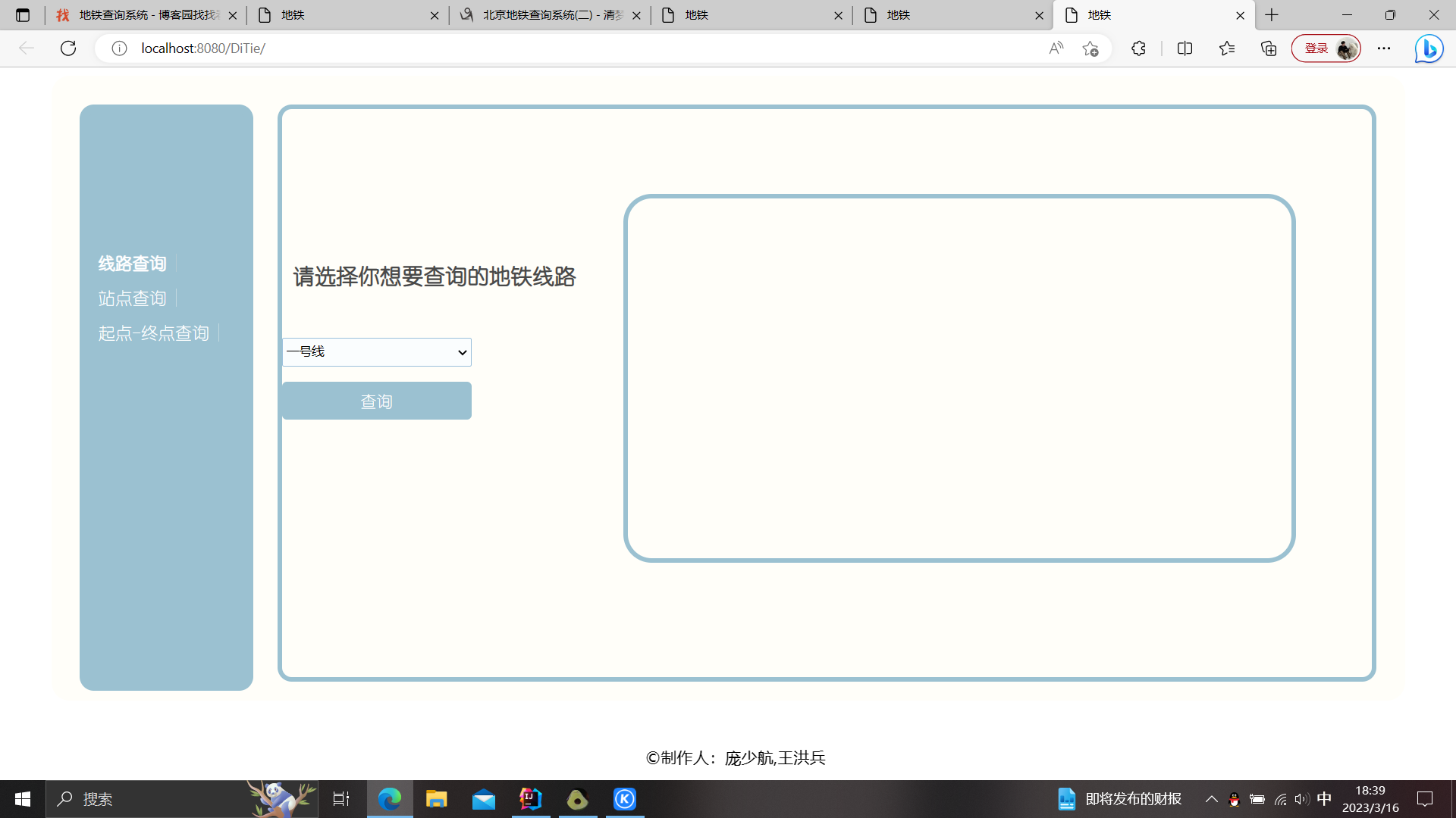 <%@ page import="java.util.List" %> <%@ page import="com.sun.org.apache.xpath.internal.objects.XNumber" %> <%@ page contentType="text/html; charset=UTF-8" pageEncoding="UTF-8"%> <html lang="en"> <head> <meta charset="UTF-8"> <title>地铁</title> <style type="text/css"> /*设置超链接样式*/ table { border-collapse: collapse; border-spacing: 0; } a { color: #ffffff; text-decoration:none; font-family:"幼圆";/*设置字体*/ font-size:18px;/*设置字体大小*/ font-weight:5;/*调整字体粗细*/ } a:hover { color:#f56f2c; font-size: 18px; } a:visited { color: #5086a5; font-size: 12px; } /*整个tab层居中,宽度为600px*/ #tabDiv { width: 600px; margin: 1em auto; padding-bottom: 10px; border-right: #ffffff 1px solid; border-top: #ffffff 1px solid; border-left: #ffffff 1px solid; border-bottom: #ffffff 1px solid; background-color:#fffef9 ; } /*tab头的样式*/ #tabsHead { height: 226px; background-color:#9bc1d2 ; } /*已选tab头(超链接)的样式*/ .curtab { padding-top: 0px; padding-right: 10px; padding-bottom: 0px; padding-left: 10px; border-right: #b2c9d3 1px solid; font-weight: bold; float: left; cursor: pointer; } /*未选tab头(超链接)的样式*/ .tabs { border-right: #c1d8e0 1px solid; padding-top: 0px; padding-right: 10px; padding-bottom: 0px; padding-left: 10px; font-weight: normal; float: left; cursor: pointer; } li { font-family:"幼圆";/*设置字体*/ font-size: 18px; font-weight: 666; color:#494949; } .title { float: right; font-size: 24px; font-weight: 500; font-family:"幼圆";/*设置字体*/ color:#ffffff; } .ziti { font-size: 18px; font-weight: 666; font-family:"幼圆";/*设置字体*/ color:#494949; } .ziti2 { font-size: 23px; font-weight: 666; font-family:"幼圆";/*设置字体*/ color:#494949; } .ziti3 { font-size: 18px; font-weight: 666; font-family:"幼圆";/*设置字体*/ color:#000000; } button { /* 按钮美化 */ width: 200px; /* 宽度 */ height: 40px; /* 高度 */ border-width: 0px; /* 边框宽度 */ border-radius: 5px; /* 边框半径 */ background: #9bc1d2; /* 背景颜色 */ cursor: pointer; /* 鼠标移入按钮范围时出现手势 */ outline: none; /* 不显示轮廓线 */ font-family: "幼圆"; /* 设置字体 */ color: white; /* 字体颜色 */ font-size: 17px; /* 字体大小 */ } button:hover { /* 鼠标移入按钮范围时改变颜色 */ background: #5599FF; } .select{ background:#fafdfe; height:31px; width:200px; line-height:28px; border:1px solid #9bc0dd; -moz-border-radius:2px; -webkit-border-radius:2px; border-radius:2px; } .div_foot { position: absolute; height: 50px; text-align: center; line-height: 50px; width: 100%; } </style> <script type="text/jscript"> //显示tab(tabHeadId:tab头中当前的超链接;tabContentId要显示的层ID) function showTab(tabHeadId,tabContentId) { //tab层 var tabDiv = document.getElementById("tabDiv"); //将tab层中所有的内容层设为不可见 //遍历tab层下的所有子节点 var taContents = tabDiv.childNodes; for(i=0; i<taContents.length; i++) { //将所有内容层都设为不可见 if(taContents[i].id!=null && taContents[i].id != 'tabsHead') { taContents[i].style.display = 'none'; } } //将要显示的层设为可见 document.getElementById(tabContentId).style.display = 'block'; //遍历tab头中所有的超链接 var tabHeads = document.getElementById('tabsHead').getElementsByTagName('a'); for(i=0; i<tabHeads.length; i++) { //将超链接的样式设为未选的tab头样式 tabHeads[i].className='tabs'; } //将当前超链接的样式设为已选tab头样式 document.getElementById(tabHeadId).className='curtab'; document.getElementById(tabHeadId).blur(); } </script> </head> <body> <div id="tabDiv" style="padding:30px;border-radius:20px;width:90%;height:600px;margin: auto; "> <div id="tabsHead" style="border-radius:15px;border:10px solid #9bc1d2;float:left;width:12%;height:600px;text-align:center; "> <h1></h1> <div style="border-radius:90px;width:90px;height:90px; background: url(https://images.cnblogs.com/cnblogs_com/blogs/690901/galleries/1992752/o_220329142431_1648563849495.jpg);background-size:cover;margin: auto;text-align:center"> </div> <p></p><br> <a id="tabs1" class="curtab" href="javascript:showTab('tabs1','tabContent1')">线路查询</a><br> <p></p> <a id="tabs2" class="tabs" href="javascript:showTab('tabs2','tabContent2')">站点查询</a> <br> <p></p> <a id="tabs3" class="tabs" href="javascript:showTab('tabs3','tabContent3')">起点-终点查询</a><br> <p></p> </div> <div id="tabContent1" style="border-radius:15px;border:5px solid #9bc1d2;width:1150px;height:600px;float:right; position:relative;display: block" > <p> </p> <p> </p> <div style="border-radius:30px;border:5px solid #9bc1d2;width:700px;height:380px;position: absolute;right:80px;"> </div> <p> </p> <p> </p> <h1 class="ziti2"> 请选择你想要查询的地铁线路 </h1> <p> </p> <form action="chaxun.jsp" method="post" target="hideIframe1" > <p> <select name="number" class="select" > <option value="1"selected>一号线</option> <option value="2">二号线</option> <option value="4">四号线</option> <option value="5">五号线</option> <option value="6">六号线</option> <option value="7">七号线</option> <option value="8">八号线</option> <option value="9">九号线</option> <option value="10">十号线</option> <option value="13">十三号线</option> <option value="14">十四号线</option> <option value="15">十五号线</option> </select><br></p> <p> <button type="submit" id="id_submit" name="nm_submit" value="提交">查询</button></p> </form> </div> <div id="tabContent2" style="border-radius:15px;border:5px solid #9bc1d2;width:1150px;height:600px;float:right; position:relative;display: none" > <p> </p> <p> </p> <div style="border-radius:30px;border:5px solid #9bc1d2;width:700px;height:380px;position: absolute; right:80px;"> <iframe id="myIframe2" name="hideIframe2" style="" src="chaxun2.jsp" frameborder="0" width="100%" height="100%"></iframe> </div> <p> </p> <p> </p> <h1 class="ziti2"> 请