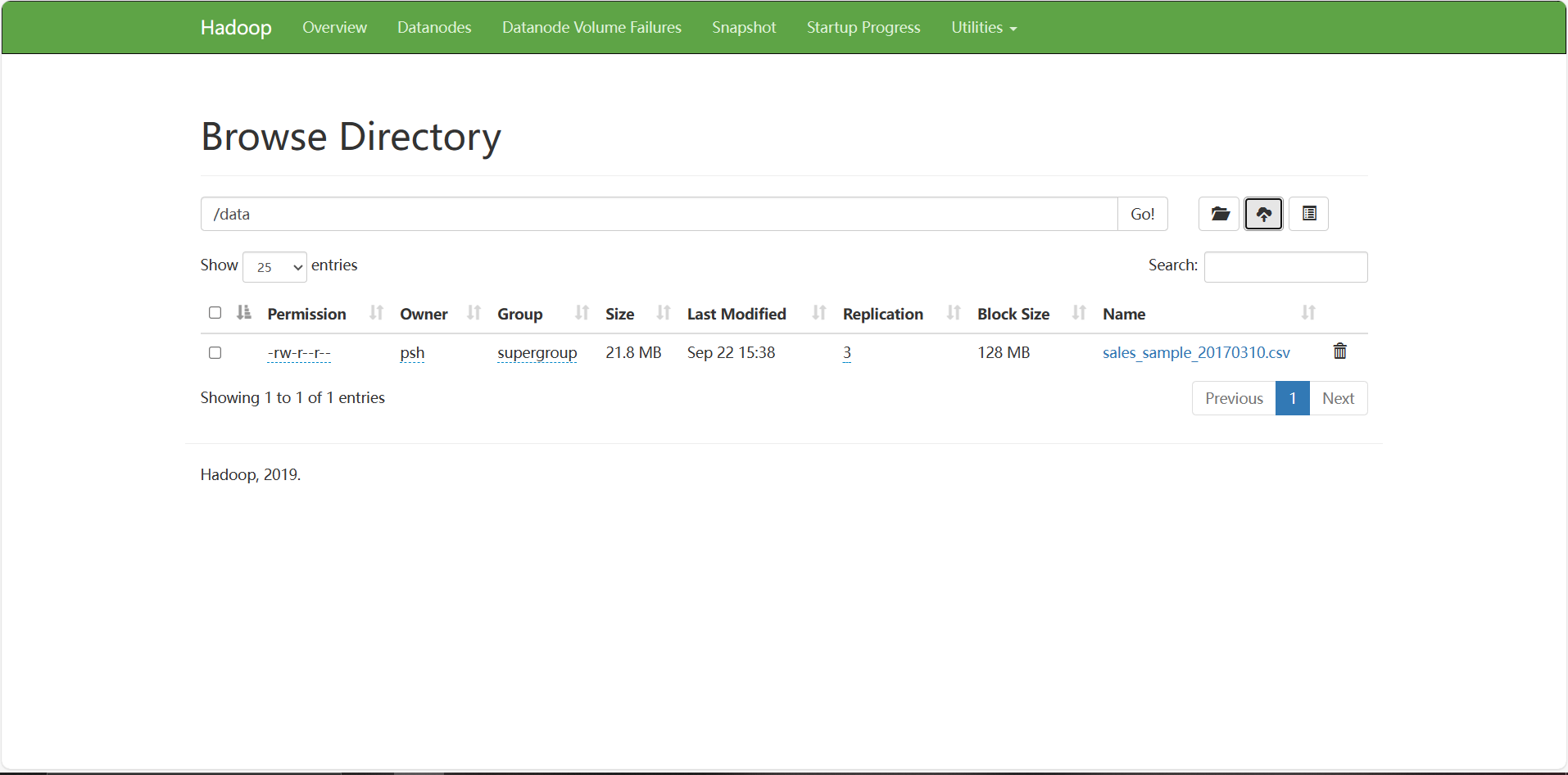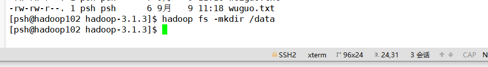 首先在创建文件要导入的hdfs的目录,我这里创建的是根目录data