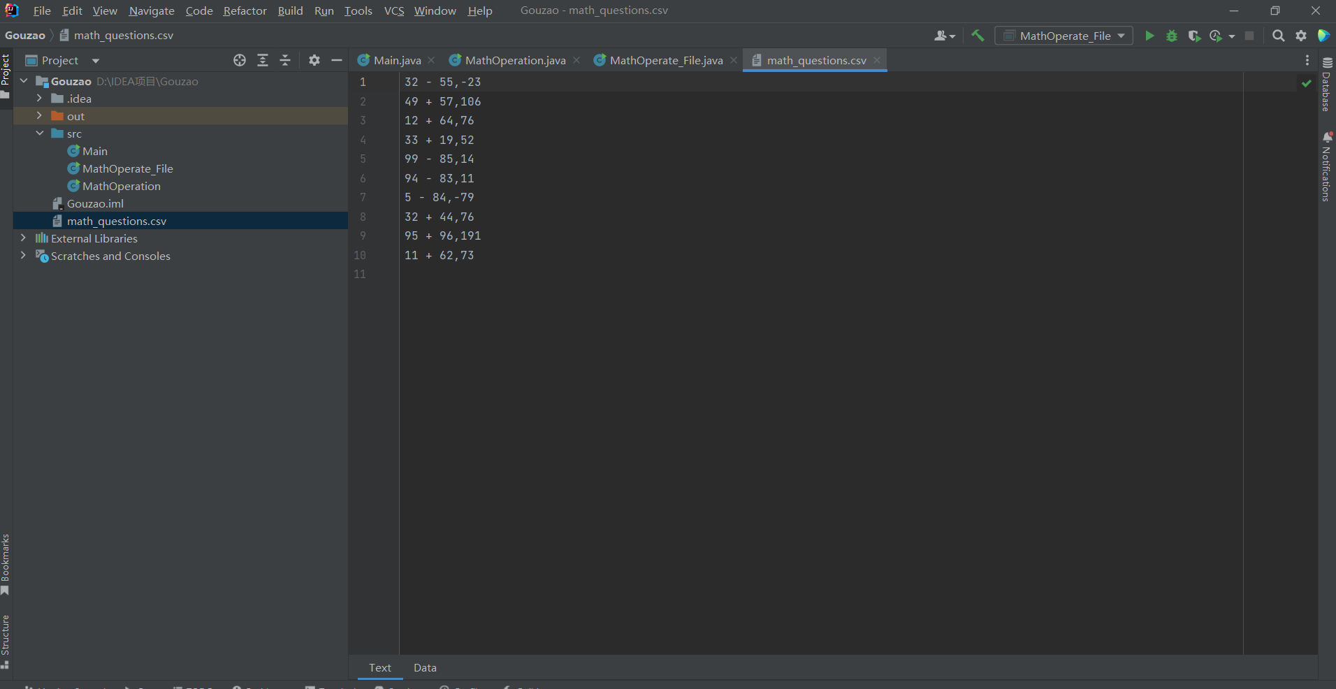 尝试将生成的算式及习题长期保存下来,建议采用CSV形式存储。提交实现效果截图及相关代码。