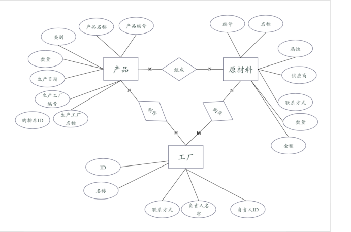 7.点击菜单栏生产管理,可进入生产管理界面,在这个界面能够进行生产产品信息的录入,产品信息的修改,删除以及可根据产品编号和产品类型进行查询.设计界面如下图:
