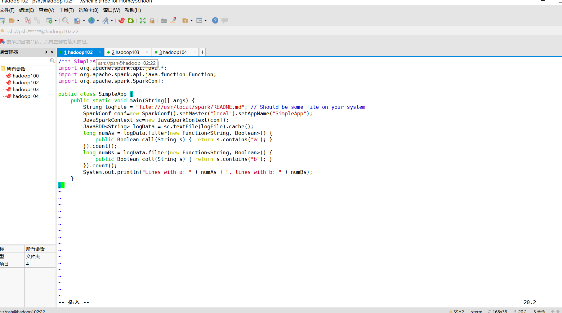 编程实践:参考教程https://dblab.xmu.edu.cn/blog/4322/,任意选择以下一种方式通过Spark API 编写一个独立应用程序。