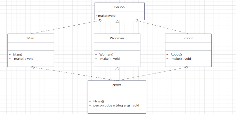 使用简单工厂模式模拟女娲(Nvwa)造人(Person),如果传入参数M,则返回一个Man对象,如果传入参数W,则返回一个Woman对象,如果传入参数R,则返回一个Robot对象。请用程序设计实现上述场景。