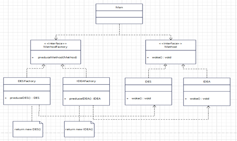 目前常用的加密算法有DES(Data Encryption Standard)和IDEA(International Data Encryption Algorithm)国际数据加密算法等,请用工厂方法实现加密算法系统。