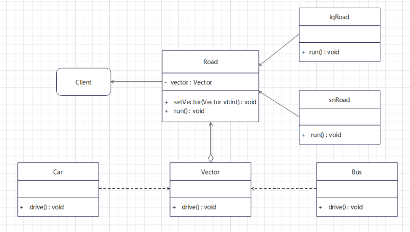 用桥接模式实现在路上开车这个问题,其中,车可以是car或bus,路可以是水泥路或沥青路。