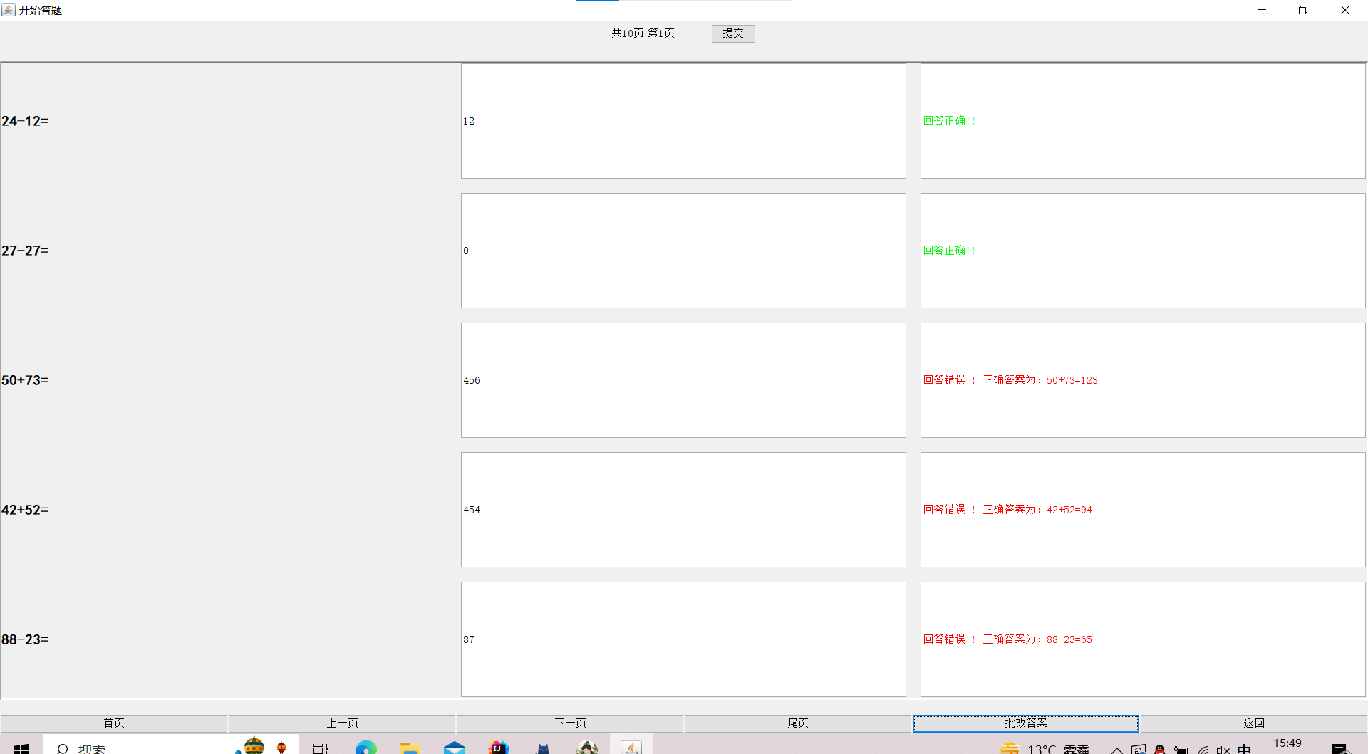 jta[k].setText("回答错误!! 正确答案为:"+jl[k].getText()+answer[k]);