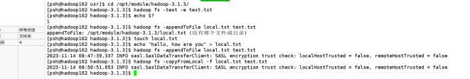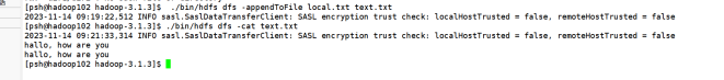 (1)向HDFS中上传任意文本文件,如果指定的文件在HDFS中已经存在,则由用户来指定是追加到原有文件末尾还是覆盖原有的文件;