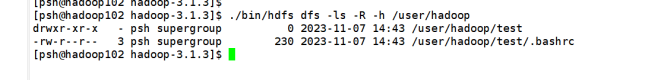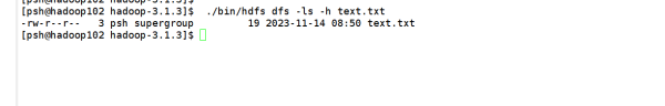 (4)显示HDFS中指定的文件的读写权限、大小、创建时间、路径等信息;