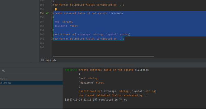 (2)创建一个外部分区表dividends(分区字段为exchange和symbol),字段分隔符为英文逗号,表结构如表14-12所示。